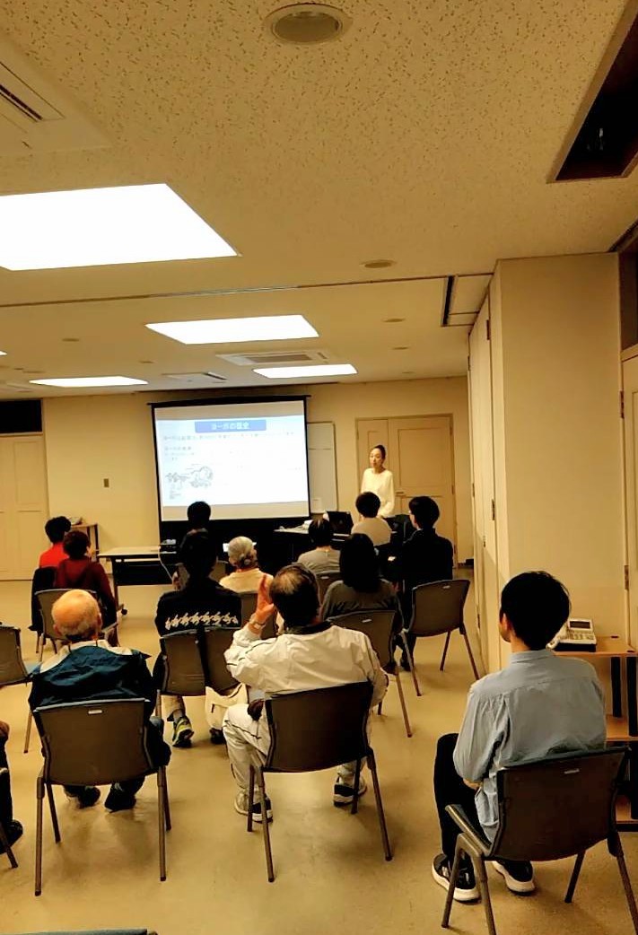 ●「ヨーガ療法」のイベント ‥ヨガ初心者の方が多くスライドでの解説を行い、イスヨガ実習を指導しました